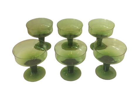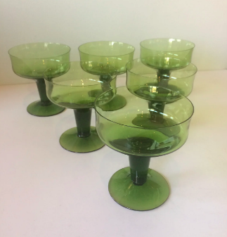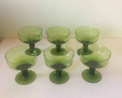 *** SOLD***GREEN HANDBLOWN DESSERT GLASSES (6) $135